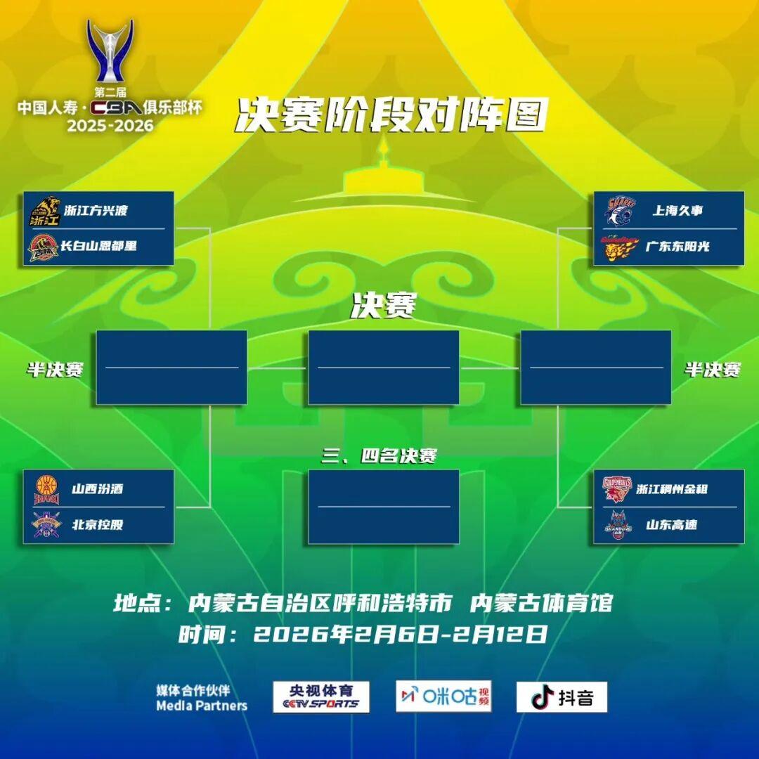 第二届中国人寿·CBA俱乐部杯决赛争夺即将打响!决赛阶段竞赛日程安排如下: